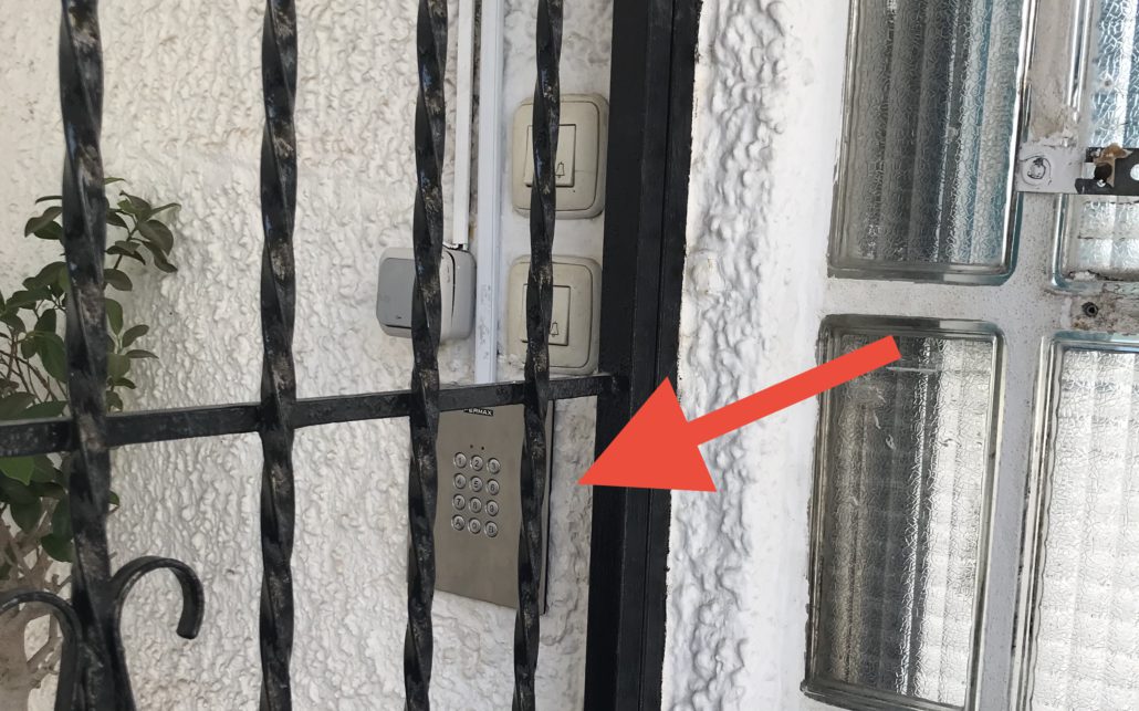 Code for locked grilled door: 0011 (zero, zero, one, one)